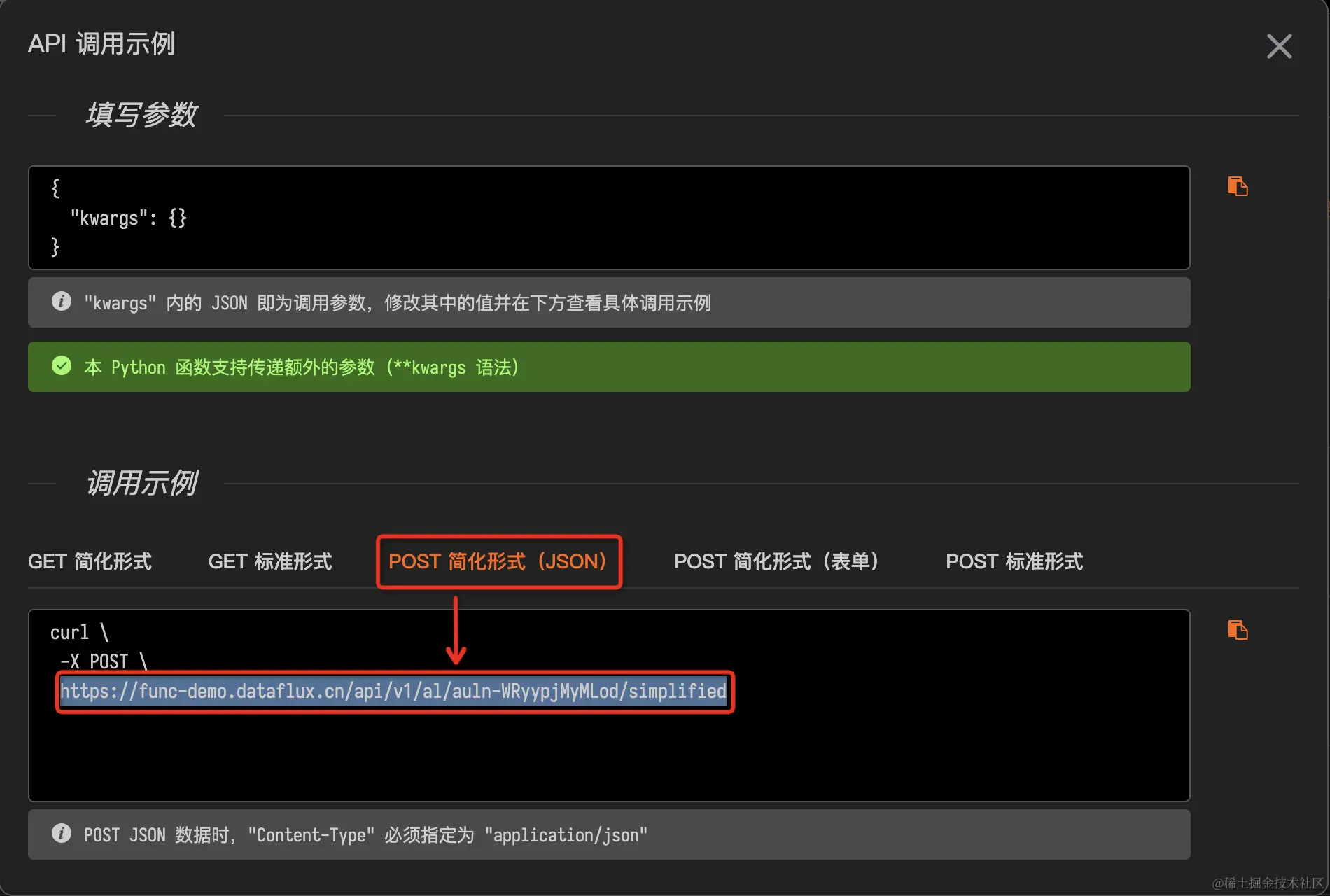 复制该API,作为后续观测云Webhook通知对象的访问地址。