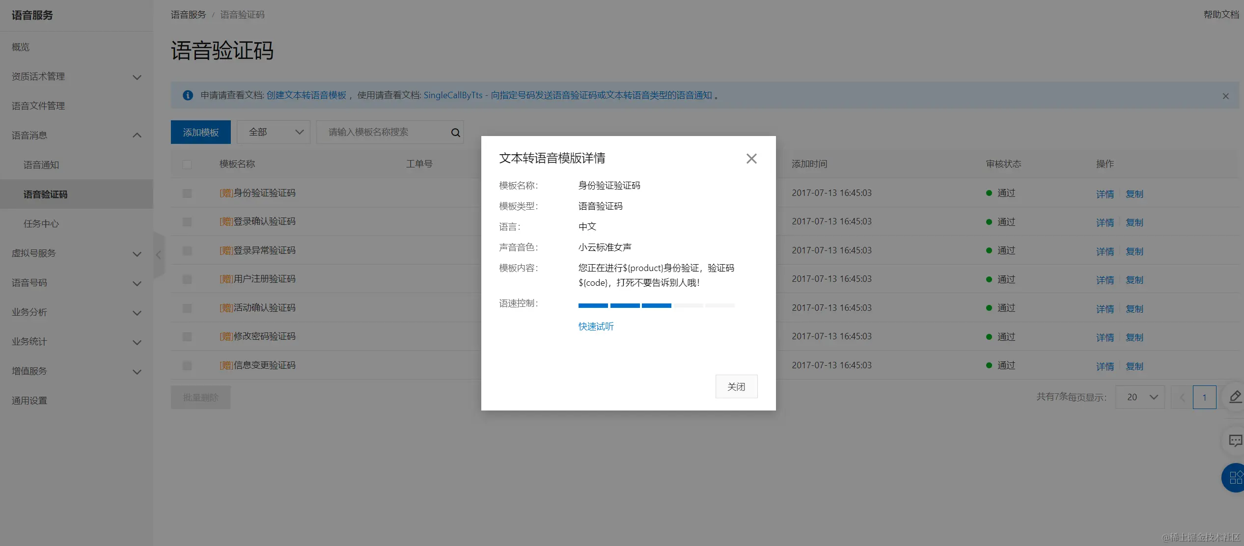 云厂商语音模板