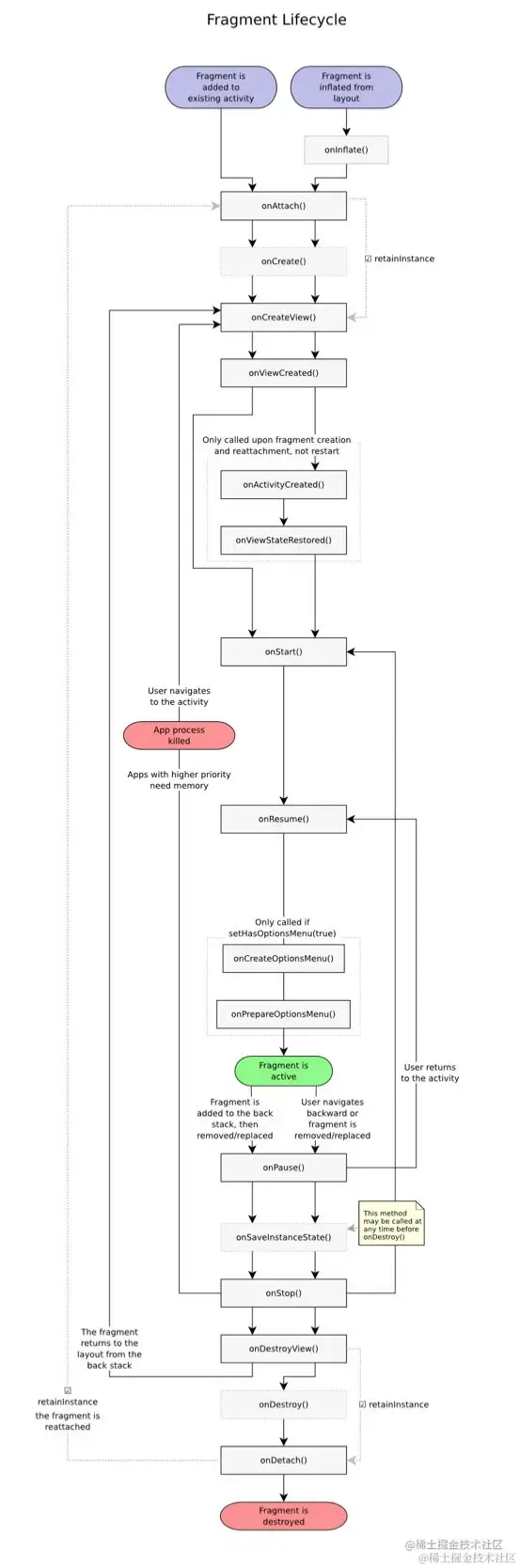 Fragment 相对于 Activity 来说比较特殊,因为其关联的 View 对象可以在单次 FragmentLifecycle 过程中先后多次加载和销毁,因此实际上 FragmentView 的生命周期和 Fragment 并不同步。