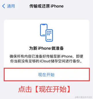 步骤3:点击【传输或还原iPhone】,在弹出的页面中点击【现在开始】。