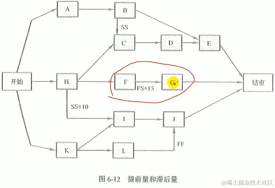 提前量与滞后量:(了解) 在活动之间加入时间提前量与滞后量,可以更准确地表达活动之间的逻辑关系。 提前量是相对于紧前活动,紧后活动可以提前的时间量。例如,对于-一个大型技术文档,技术文件编写小组可以在写完文件初稿(紧前活动)之前15天着手第二稿(紧后活动)。在进度规划软件中,提前量往往表示为负数。 滞后量足相对于紧前活动,紧后活动需要推迟的刚间量。例如,为了保证混凝土有10天养护期,可以在两道工序之间加入10天的滞后时间。在进度规划软件中,滞后量往往表示为正数。