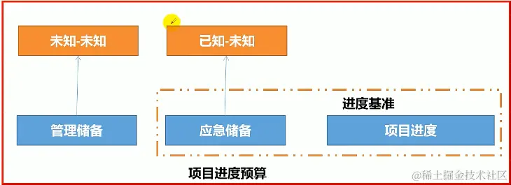 - 管理储备是为管理控制的目的而特别留出的项目时段,用来应对项目范围中不可预见的工作。管理储备用来应对会影响项目的“==末知-末知==”风险。==管理储备不包括在进度基准中==,但属于项目总持续时间的一部分。使用管理储备可能需要变更进度基准。(==未知-未知==:毫无头绪的风险,我们甚至没有想到它们可能存在。例如,1941年珍珠港遭到日本神风特攻队的袭击时,美国没有做好任何准备,因为它从来没有设想过这样的袭击可能会发生。)