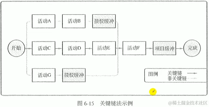 关键链法增加了作为“非工作活动”的持续时间缓冲,用来应对不确定性。