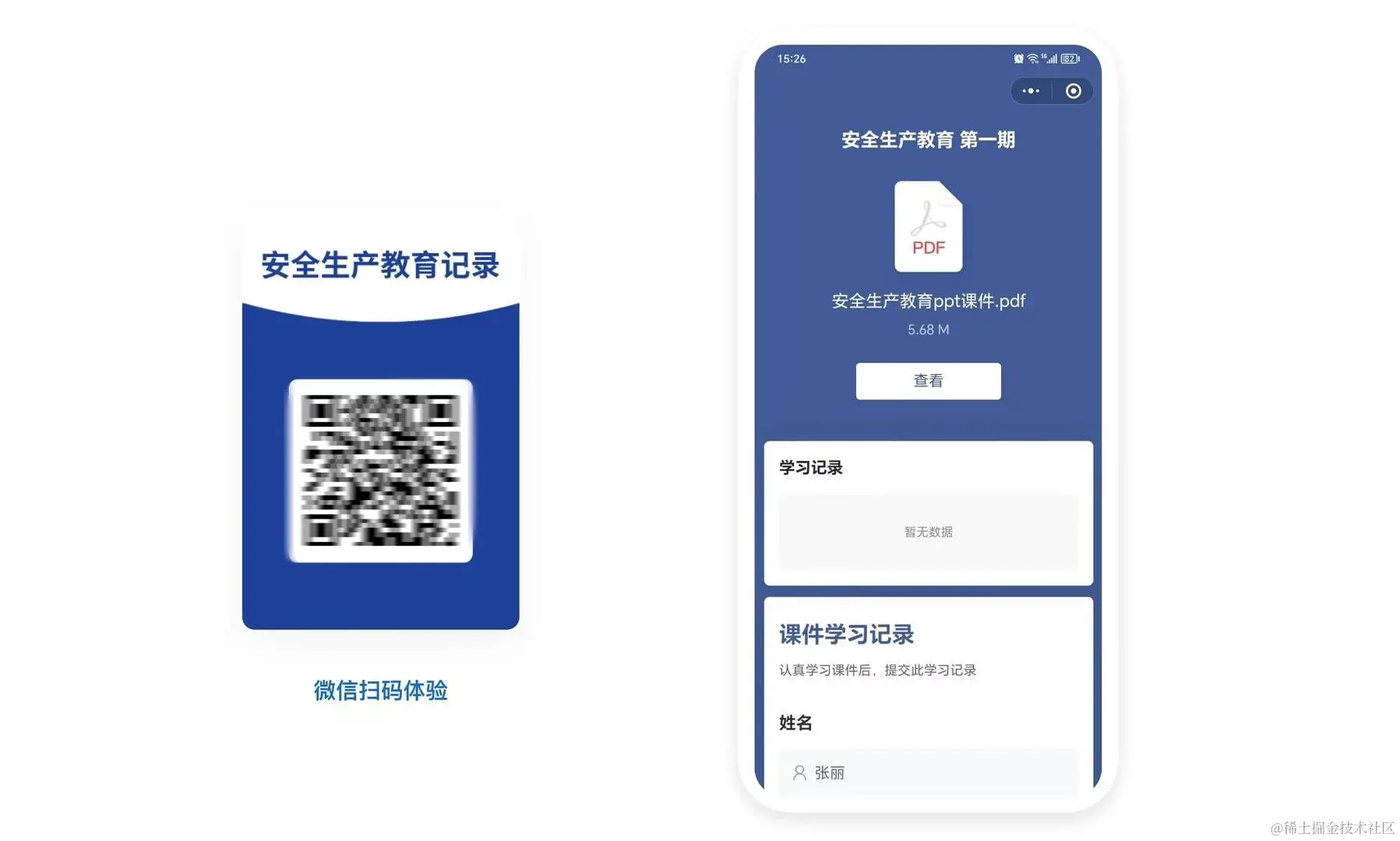 员工自主学习的培训,可通过扫码的方式获取培训课件内容,学习完成后提交培训记录,系统自动统计学习情况;