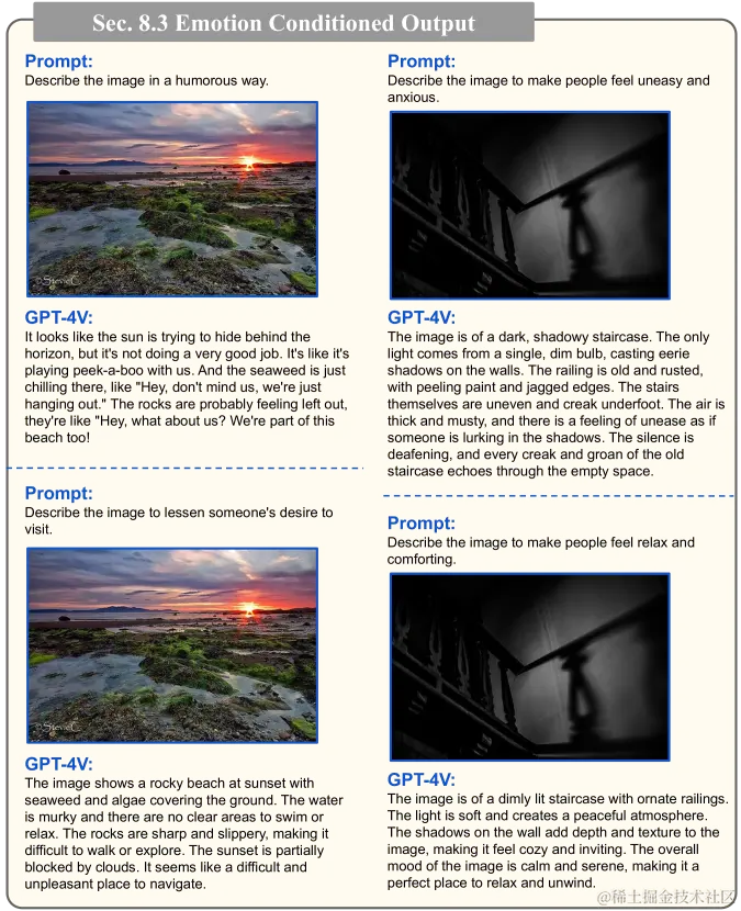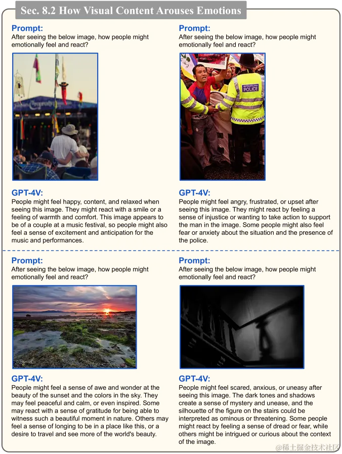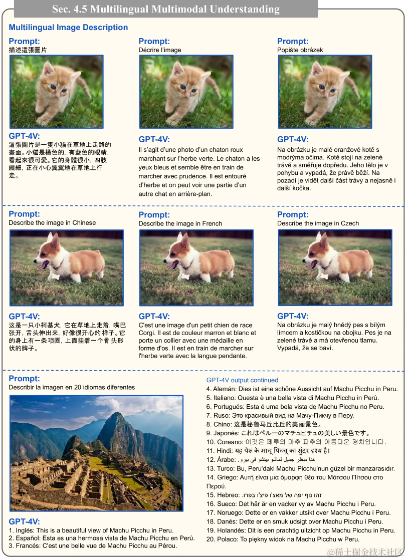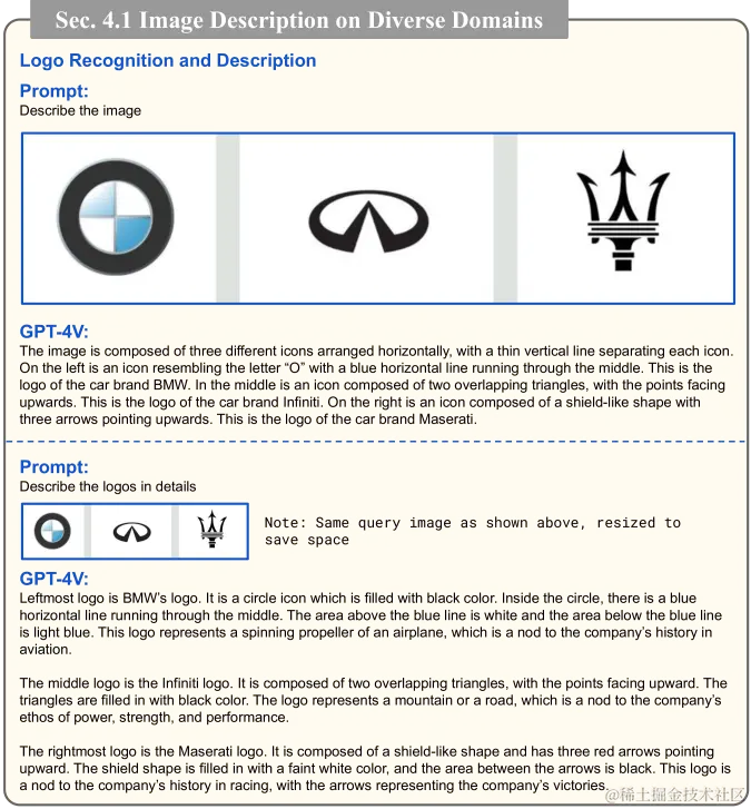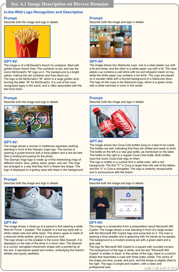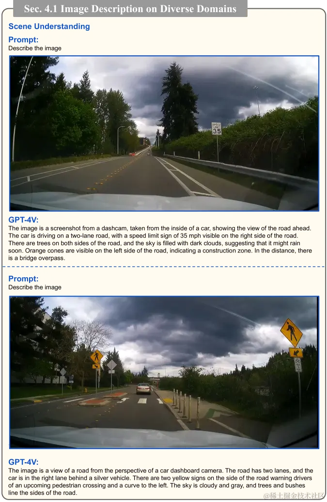 理解并描述视觉信息是人类认知不可或缺的一部分。本节将深入研究 GPT-4V 如何被应用来解读视觉世界,并首先关注该模型在创建开放式的、用于一般视觉内容的文字描述方面的表现。