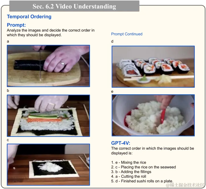 图 116:网上视频观看实例。我们呈现了 GPT-4V 视频帧的截图,顺序与原视频一致。为简洁呈现,我们将视频帧一行排列,左起即为首帧。更多讨论详见第 9.8 节。