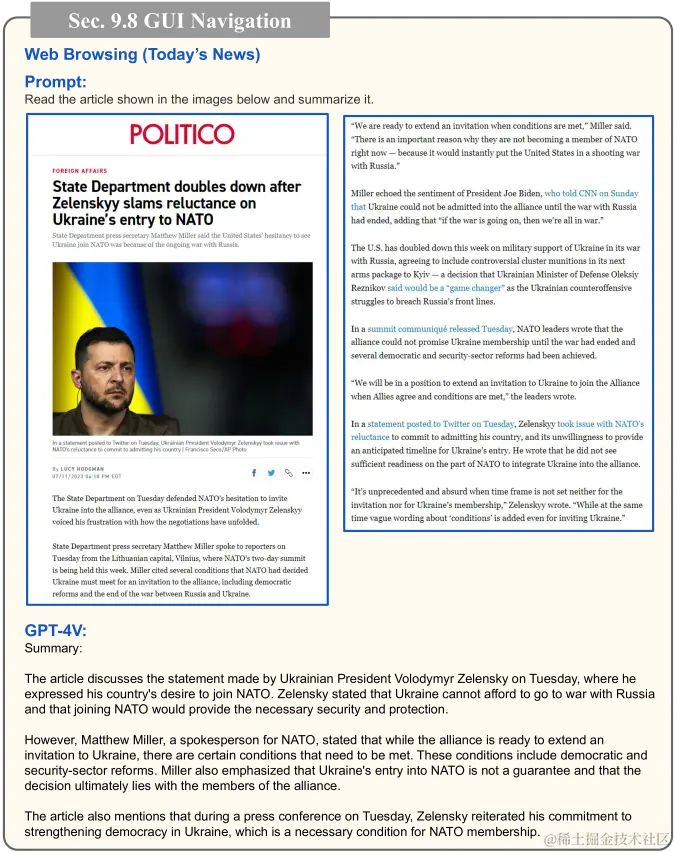 图 102:GPT-4V 在图形界面下阅读第二篇新闻的截图并进行总结。更多细节请查阅第 9.8 节。