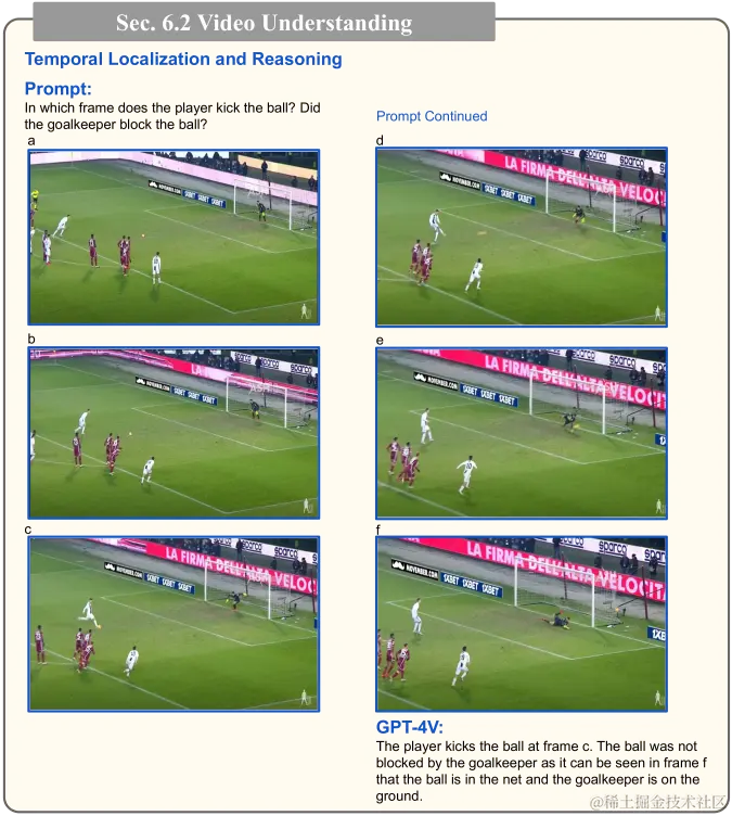 图 115: 我们引导 GPT-4V 观看网络视频时,按照视频的时间顺序展示了各个视频帧的截图给 GPT-4V 看。为了更加简洁,我们将这些帧排成一行,左侧的是第一帧(见图 115)。红色高亮部分标出了对视频描述的不准确之处。详细讨论见第 9.8 节。