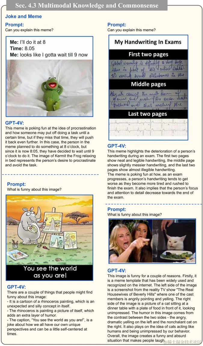 图 7:GPT-4V 擅长解读图像、子图像、文本、场景文本以及视觉指针输入的混合内容。这些元素可以作为指令、示例或是查询输入,帮助 GPT-4V 高效地完成新奇任务。详细讨论请查阅第 3.3 节。