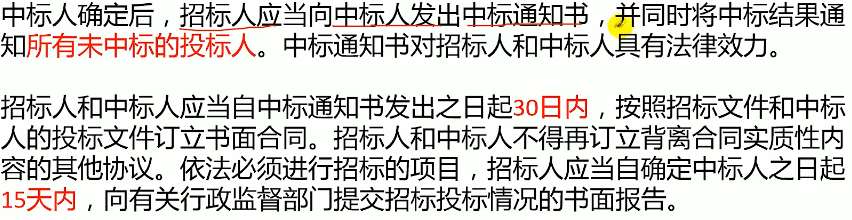 同时要通知未中标人,30日内签合同,15日内向有关部门提交报告