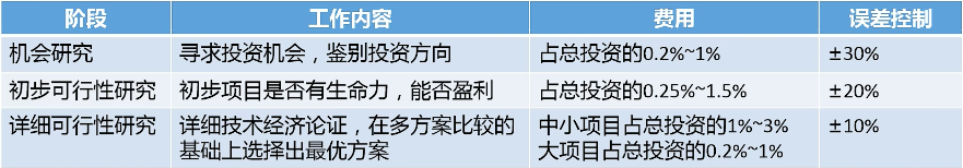 分为:机会研究、初步可行性研究和详细可行性研究