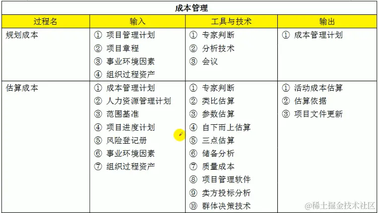 - 规划成本(写一个文档,成本管理计划,里面规定了如何做好成本管理)