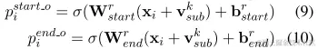 - 若为真则,否则为0【在(8)式中,用于判断在第i个位置是否是主语的开始/结束位置】