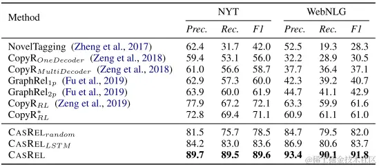 - 引入一个新的视角来看待关系三元组抽取任务,一个新的级联二进制标记框架(CASREL)