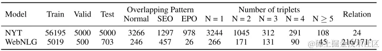 - WebNLG和WebNLG* 的性能之间存在明显的差距,但发现WebNLG中有127个错误的三元组,包含一个无意义的空实体。 另外,webnlg有216个关系,而webnlg* 只有171个。可能是这些原因造成,为比较,不解决