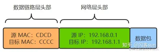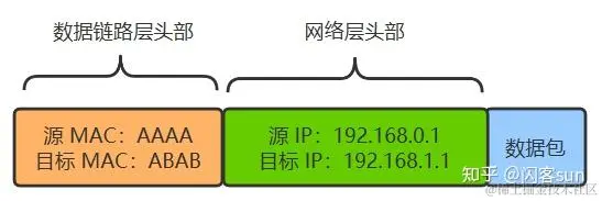 但假如 A 给 C 发送数据,A 就需要先转交给路由器,然后再由路由器转交给 C。由于最底层的传输仍然需要依赖以太网,所以数据包是分成两段的。