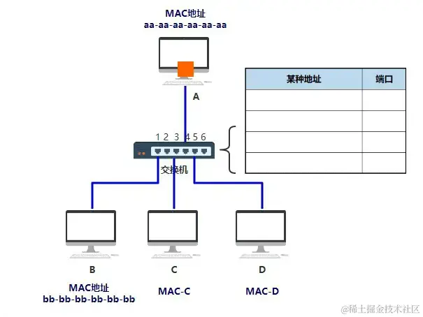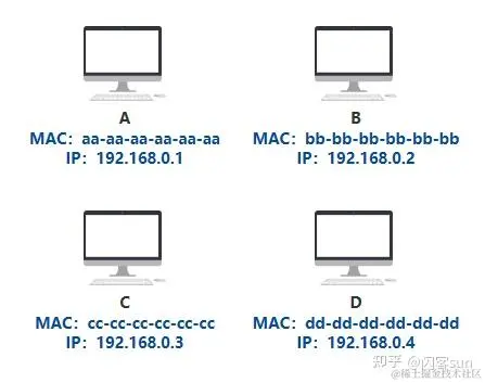 首先,你要给所有的连接到交换机的设备,都起个名字。原来你们叫 ABCD,但现在需要一个更专业的,全局唯一的名字作为标识,你把这个更高端的名字称为 MAC 地址。