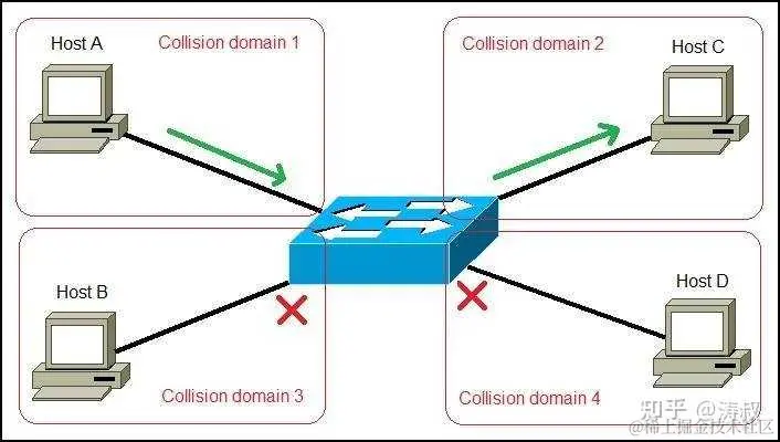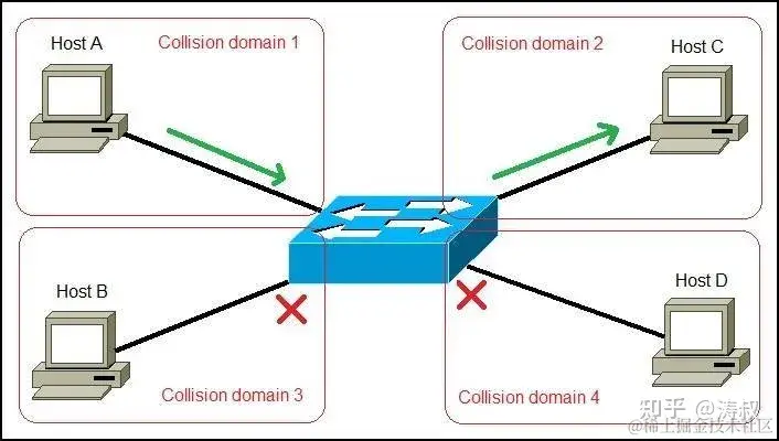 每个局域网都是冲突域,来源:geek-university.com/ccna/broadc…