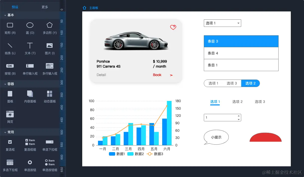 此外,除了调整组件的尺寸、样式外,我们同样需要关注原型界面的布局。尽量按照对齐、对比、亲密、重复的界面设计四大准则(出自《写给大家看的设计书》)来构建出规范、整洁的界面。