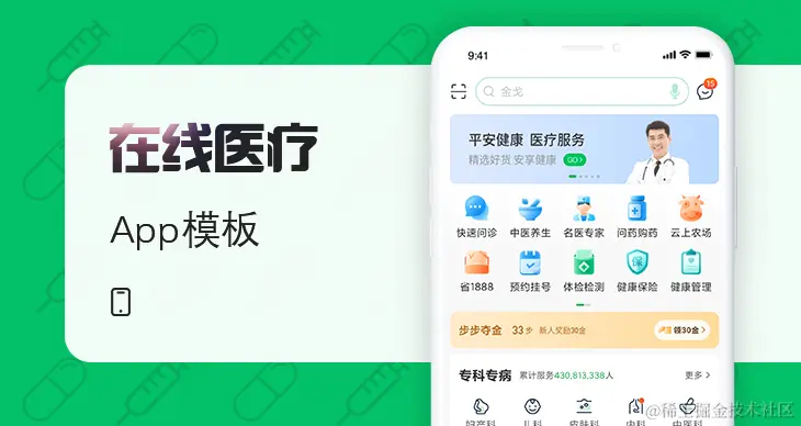 这是一个当前热门医疗行业的App项目,页面多达21个,其中包含快速问诊、名医问诊、健康社区、预约挂号、消息中心等重要功能模块。项目是高保真原型,每个页面中的内容都非常丰富,且带有完善的配图,医疗行业的小伙伴必看。