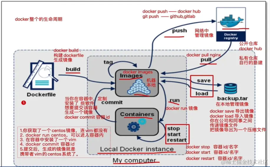 - 每一个指令都会创建提交一个镜像层,并提交。