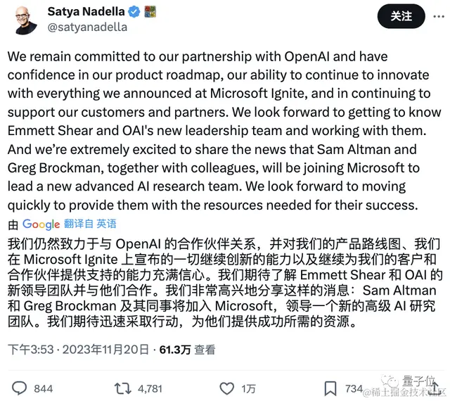 是啊,如网友所说,现在的微软可是 一边作为OpenAI最大的投资人,一边坐拥其前CEO——以及所有想跟着他离开的OpenAI员工们 (微软承诺一并收入),强大得让人不敢想象。