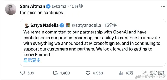 没想到,时间才不过三小时,彼时大西洋那边都即将进入半夜了,奥特曼和微软CEO直接又放了个大的。