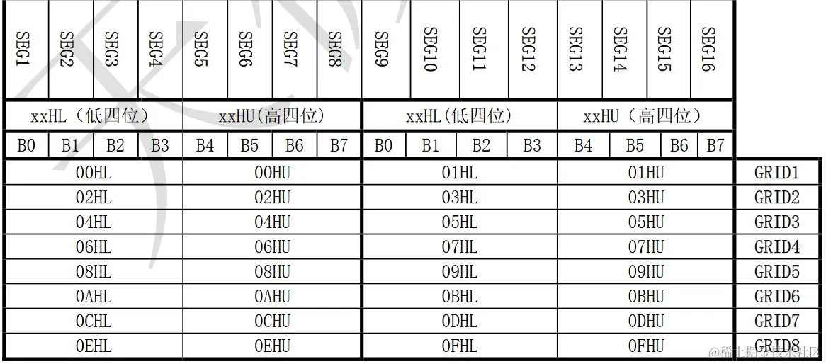 分别与芯片SEG和GRID管脚对应,具体分配如图(2):