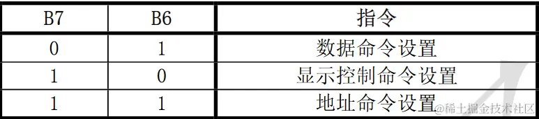 在STB下降沿后由DIN输入的第一个字节作为指令。经过译码,取最高B7、B6两位比特位以区别不同的指令。