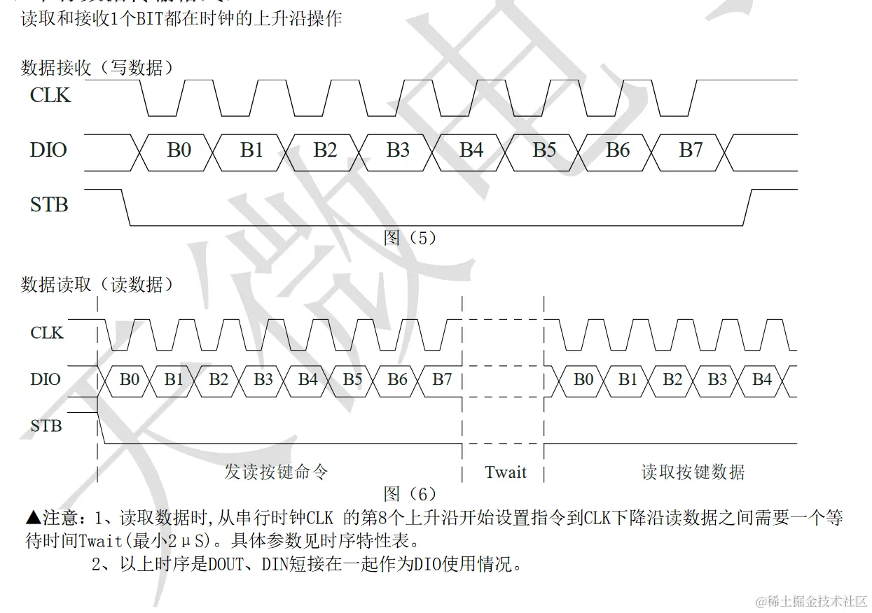 如果在指令或数据传输时STB被置为高电平,串行通讯被初始化,并且正在传送的指令或数据无效(之前传送