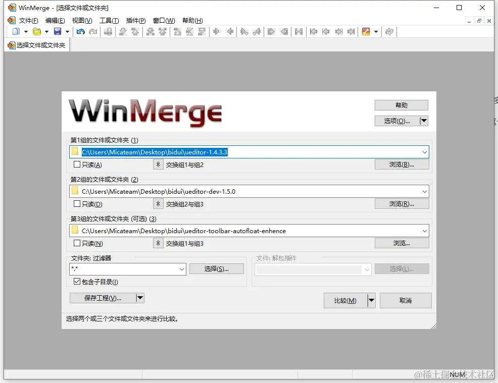 在二开百度富文本时候,比对多个二开产品就很需要,找到了这个`WinMerge`