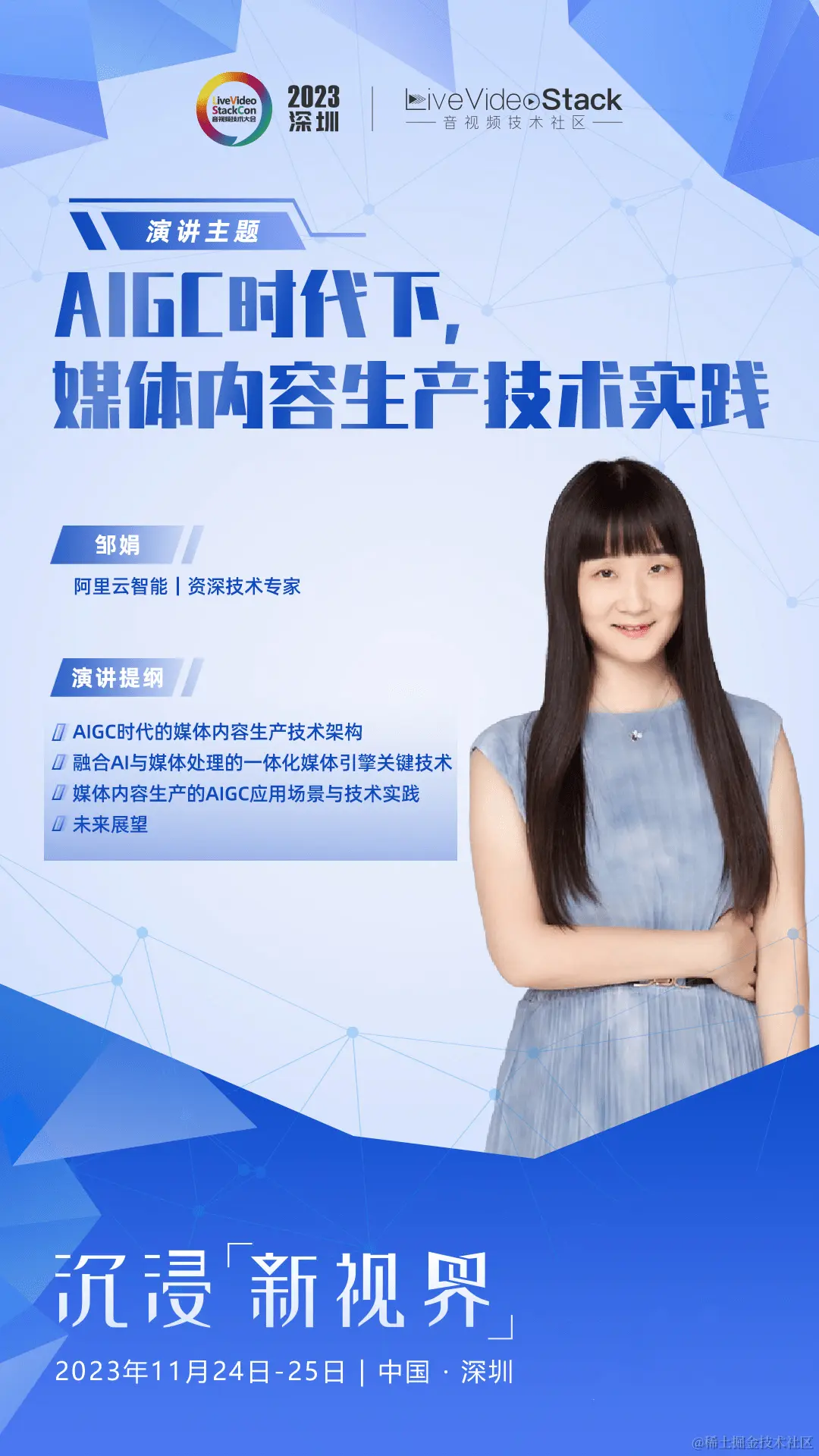 本次演讲将分享阿里云视频云媒体服务的整体技术架构,融合AI与传统媒体处理的一体化媒体引擎的关键技术,还将分享如何应用AIGC技术,重构媒体内容生产的三大模块—内容创作、媒体处理、媒资管理,以及AIGC落地相关场景的技术实践。