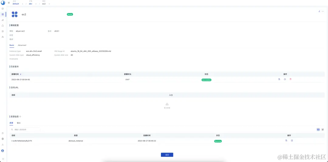 导入任务完成后,模板将显示在模板列表中,我们可以看到模板版本为刚刚创建的版本 v0.0.1。