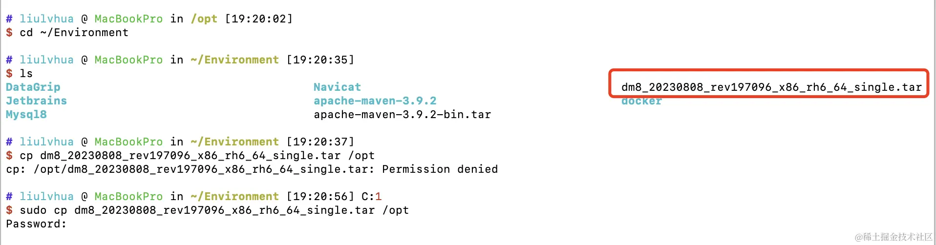 sudo cp dm8_20230808_rev197096_x86_rh6_64_single.tar /opt