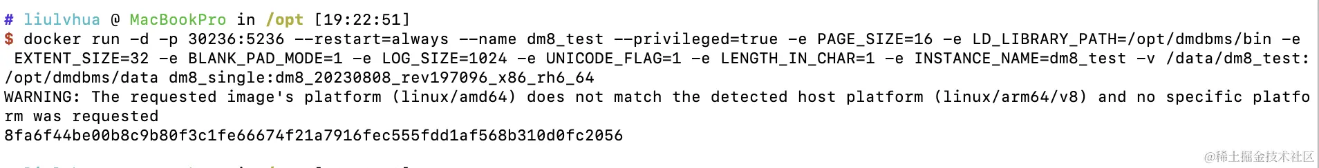 因为我的 docker 是在 MacOS 上运行的,会告警,不过不影响。