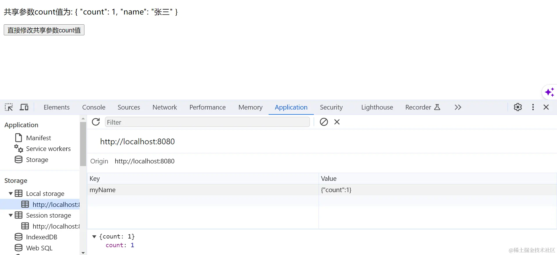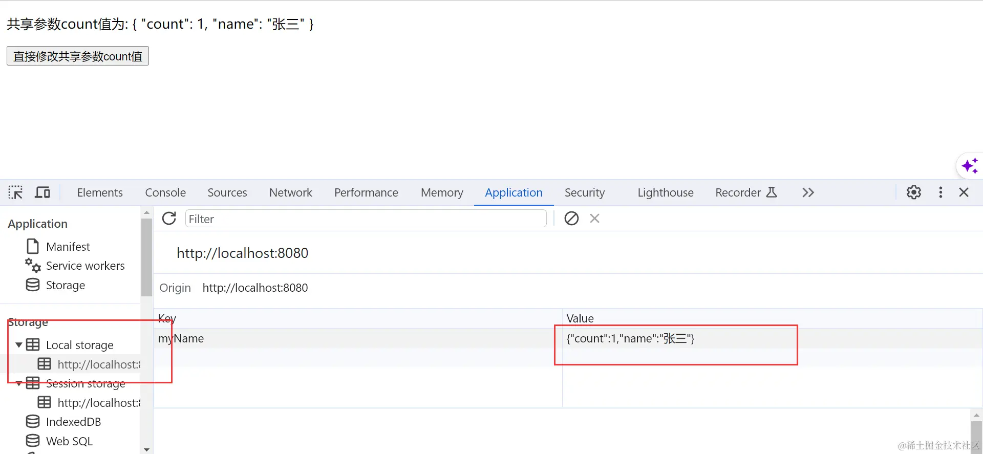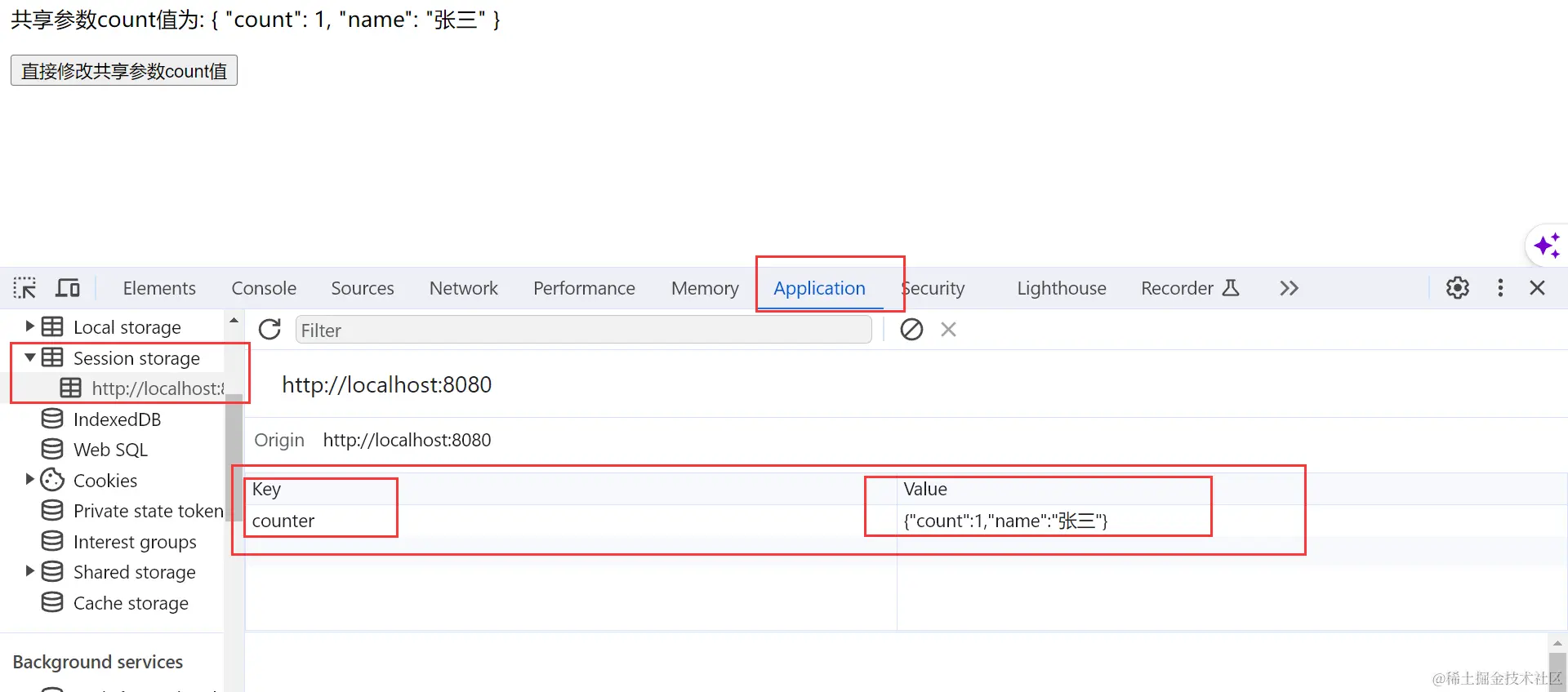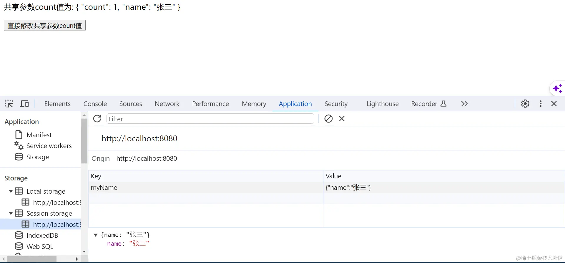 也可以分别指定参数到不同的地方,下面将count放入在local storage中,name放在session storage中