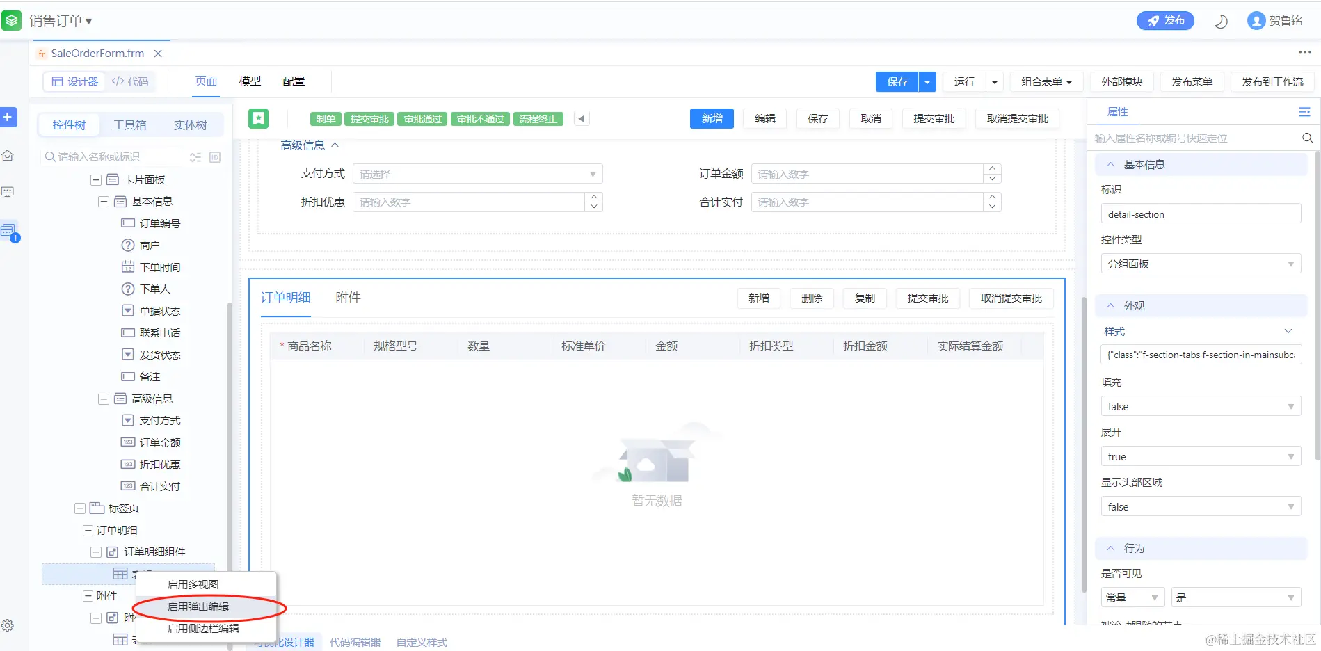 子表弹出新增,是低代码平台提供的一种前端输入组件,在子表字段较多的场景中,有时为了方便输入,我们会选择通过弹出编辑框的形式来展示并提供用户输入。接下来,让我们一起学习下如何实现功能吧!