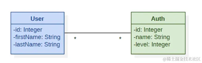 为了举例说明我们分析的意义,我们引入一个简单的操作场景:图 1.1 中的 UML 类图描述了一个与实体 Auth(授权的缩写)具有 1 对 N 关系的 User 实体,该实体定义了应用程序内的权限和授权。这种领域模型可以通过类似于表 1.1 和表 1.2 的架构在关系型数据库管理系统(RDBMS)中支持,或者在面向图形的数据库管理系统中,如图 1.2 中的知识图所示。