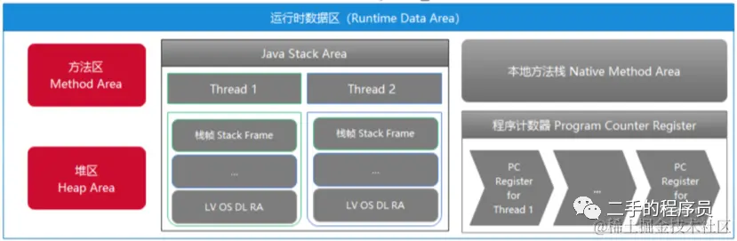 相信大家对这张图还是比较熟悉的,今天我们主要的目的就是搭建一个运行数据区的框架出来。