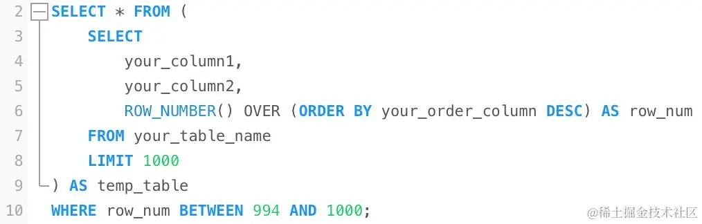 这种方法不仅避免了创建临时表,而且利用了数据库内置的窗口函数,性能相对较好。
