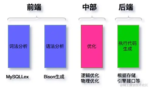 mysql分析器: SQL解析, 针对关键词/非关键词进行提取、解析, 并生成解析语法树. 如果分析到语法错误,会抛出异常: ERROR: You have an error in your SQL syntax. 同时该阶段也会做一些校验, 如不存在字段会抛出异常: unknow column in field list.