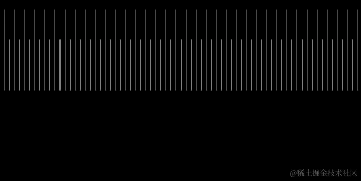 // 条件判断:i与20取余,若值为0,则画短线,否则就画长线。