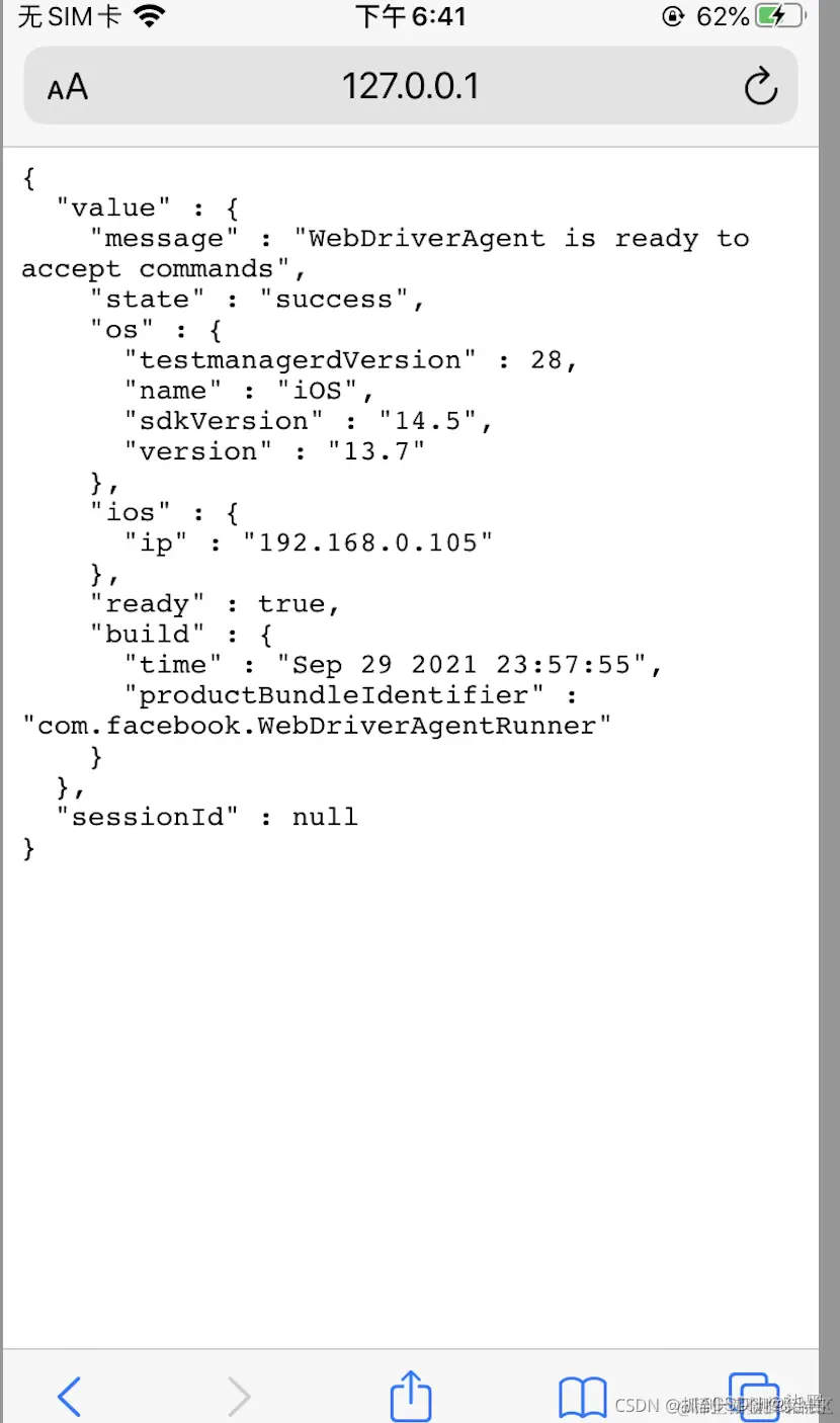 接着在iPhone设备浏览器输入127.0.0.1:8100/status