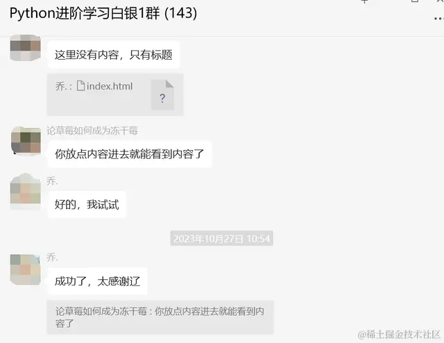 【提问补充】温馨提示,大家在群里提问的时候。可以注意下面几点:如果涉及到大文件数据,可以数据脱敏后,发点demo数据来(小文件的意思),然后贴点代码(可以复制的那种),记得发报错截图(截全)。代码不多的话,直接发代码文字即可,代码超过50行这样的话,发个.py文件就行。