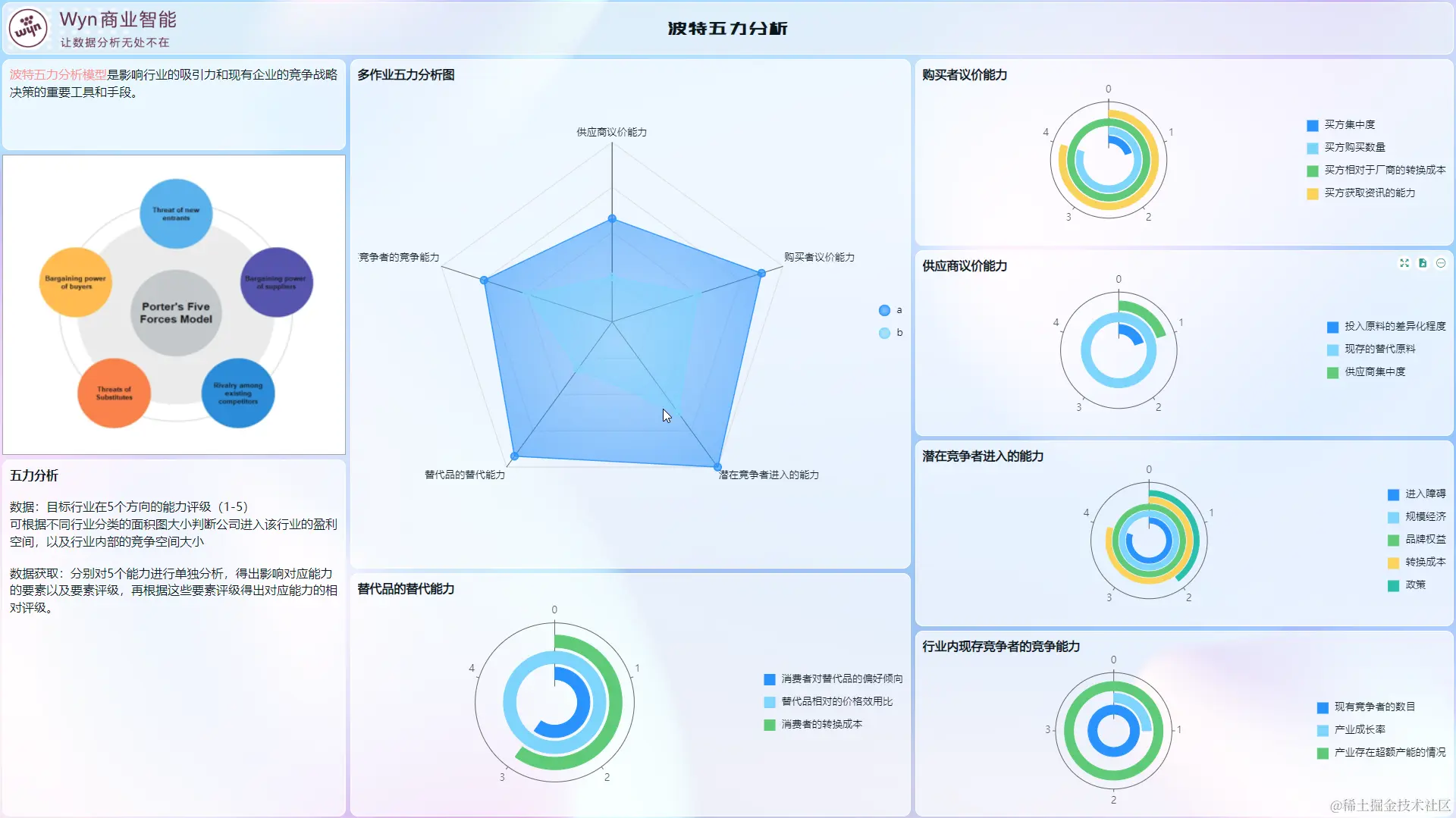 波特五力分析模型是影响行业的吸引力和现有企业的竞争战略决策的重要工具和手段。波特五力模型将大量不同的因素汇集在一个简便的模型中,以此分析一个行业的基本竞争态势。五种力量模型确定了竞争的五种主要来源,即供应商和购买者的讨价还价能力,潜在进入者的威胁,替代品的威胁,以及最后一点,来自在同一行业的公司间的竞争。