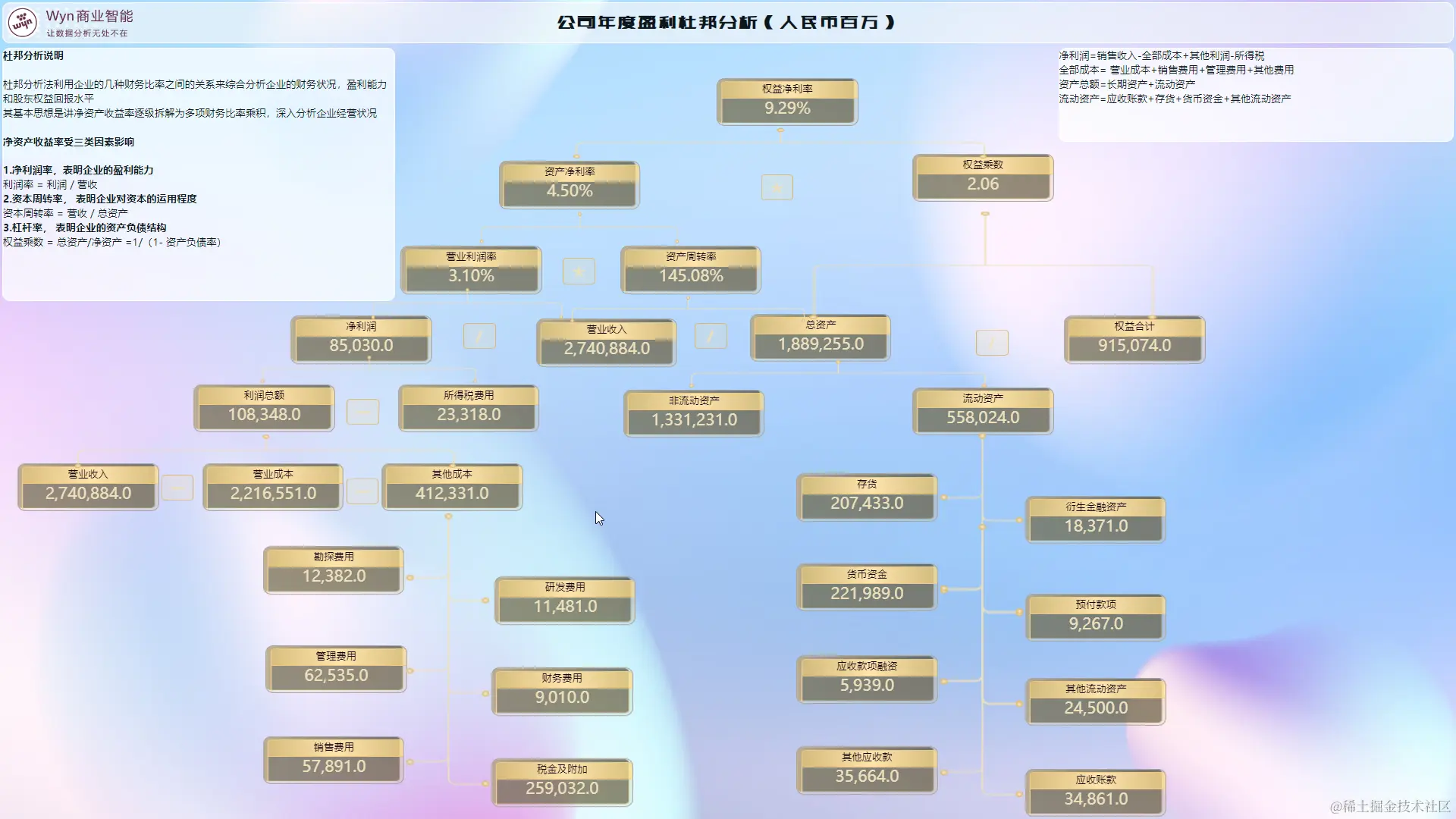 下图是在仪表板中制作的一个杜邦分析的示例: