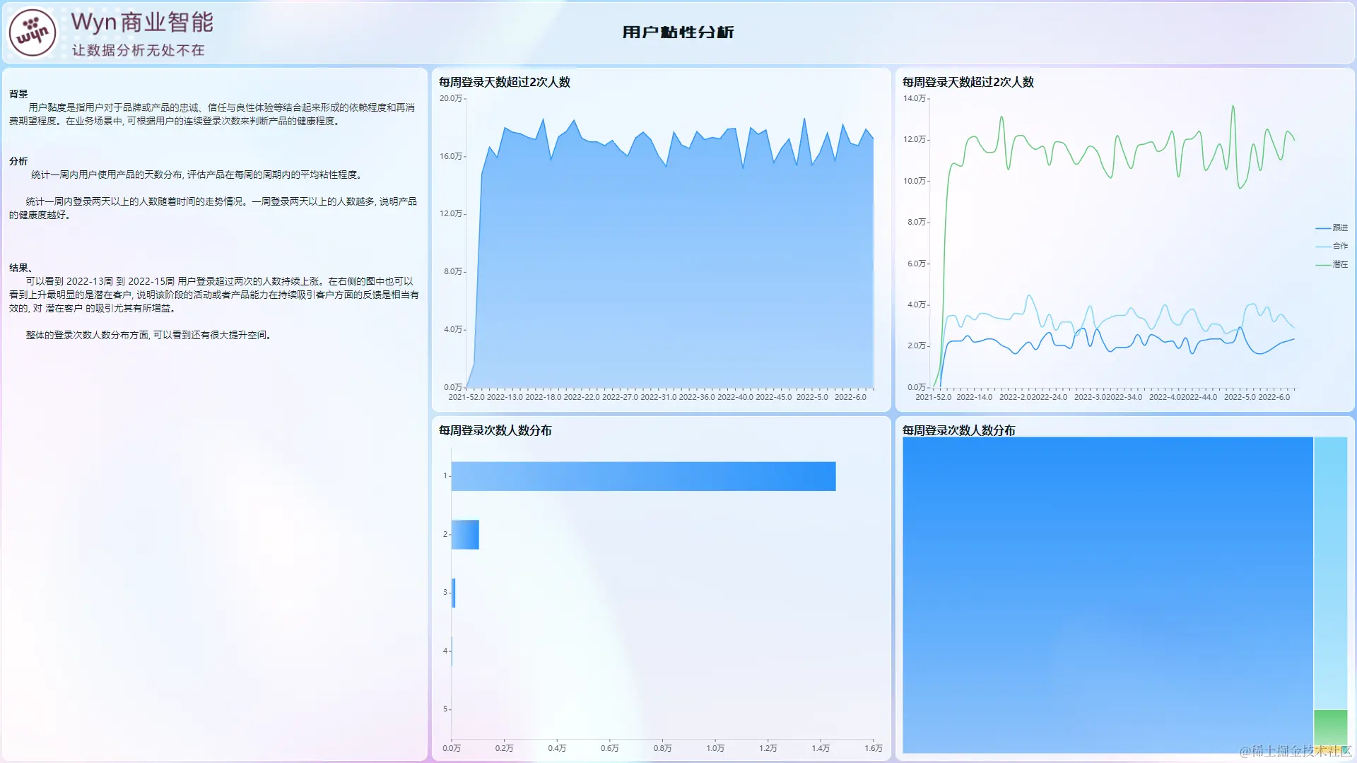 用户黏性分析:帮助运营团队了解现有用户规模, 追踪运营活动拉新效果, 为活动复盘分析提供决策依据。