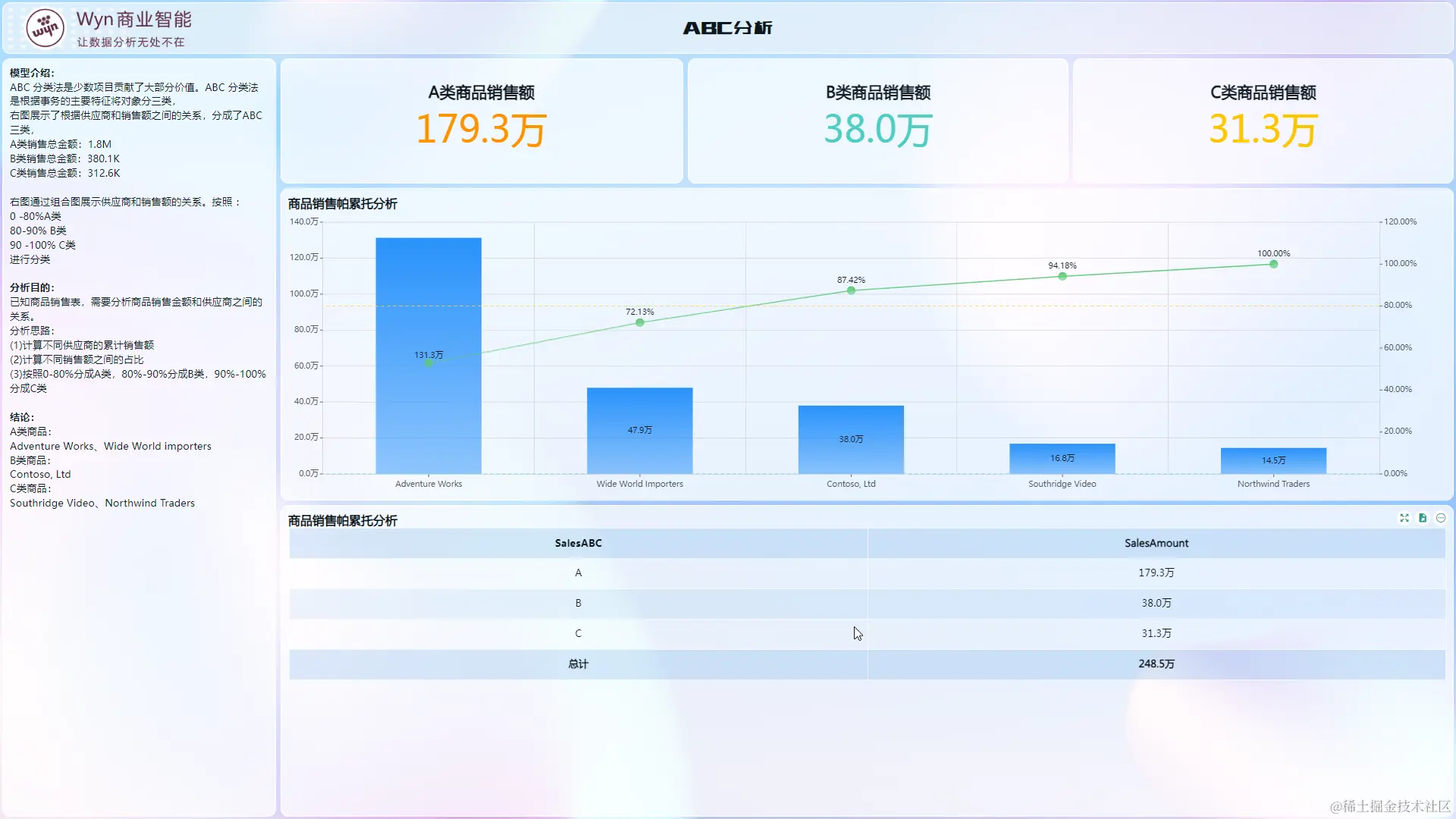上图展示了根据供应商和销售额之间的关系,分成了 ABC 三类: