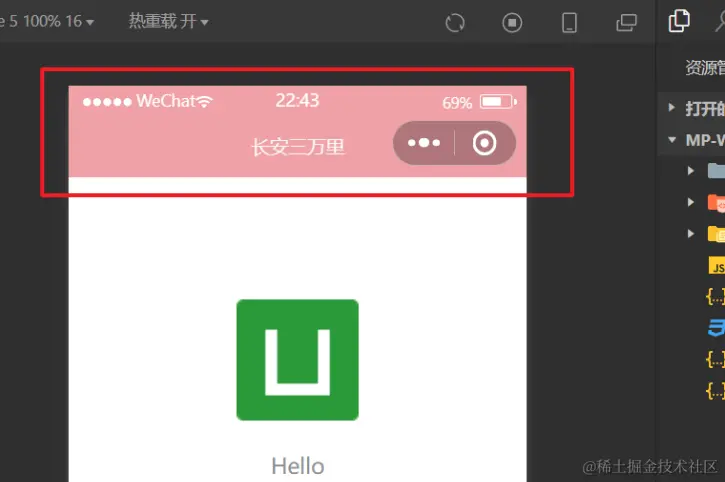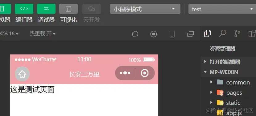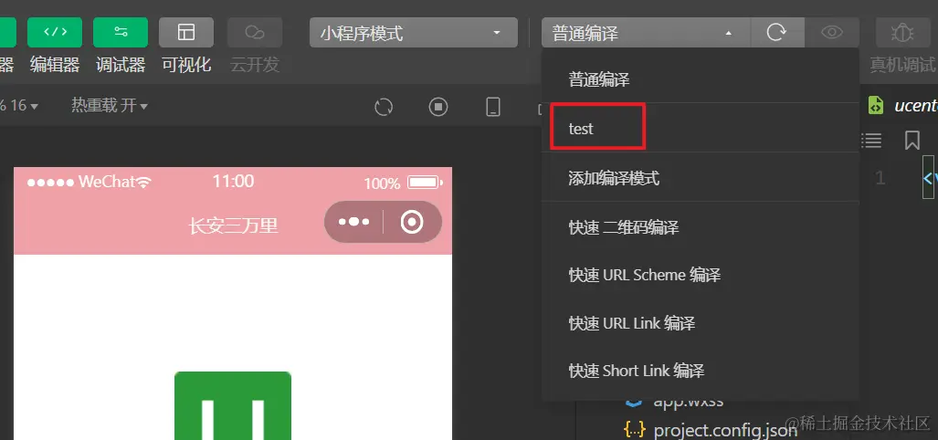 注意: 在 App 里真机运行可直接打开配置的页面,微信开发者工具里需要手动改变编译模式。