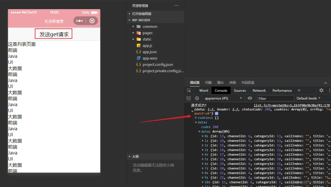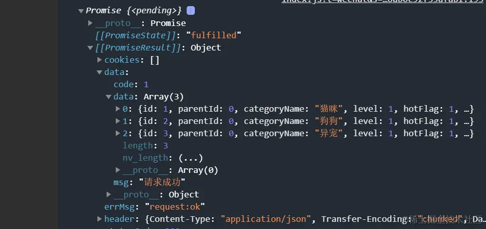又因为我们的请求是通过Promise返回的,所以我们可以异步的去调用方法。稍微修改一下,也能成功获取到。(记得重启后端项目哦😆)